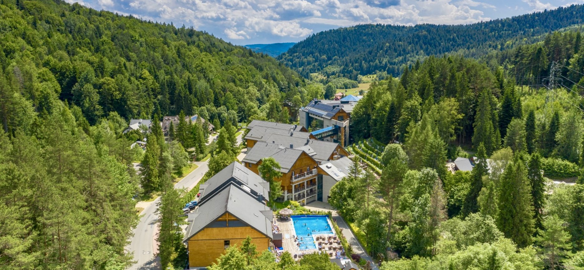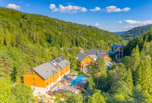Ten luksusowy hotel w Beskidzie Sądeckim oferuje 239 komfortowych pokoi i apartamentów, 3 restauracje, kręgielnię, mini golf, strefę rozrywki, wyjątkowe SPA w górach, zewnętrzny podgrzewany basen, saunę zaewnętrzną na 20 osób i nowoczesne centrum konferencyjne.